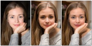 Radziłem sobie w ten sposób, że odchylałem głowicę lampy częściowo do tyłu co powodowało odbicie światła bardziej zza aparatu niż z góry. W pewnych sytuacjach, gdy za aparatem jest biała ściana, światło docierające do modela jest bardziej poziome i nieprzyjemne cienie w oczodołach znikały.